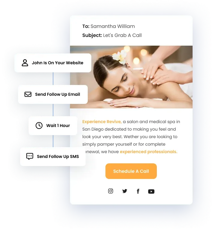 Easily reach your customers wherever they are: social media, email, text, voicemail, chat. Follow up with new leads in under 5 minutes with automatic messaging. Engage your leads with nurture campaigns so you always stay top of mind.